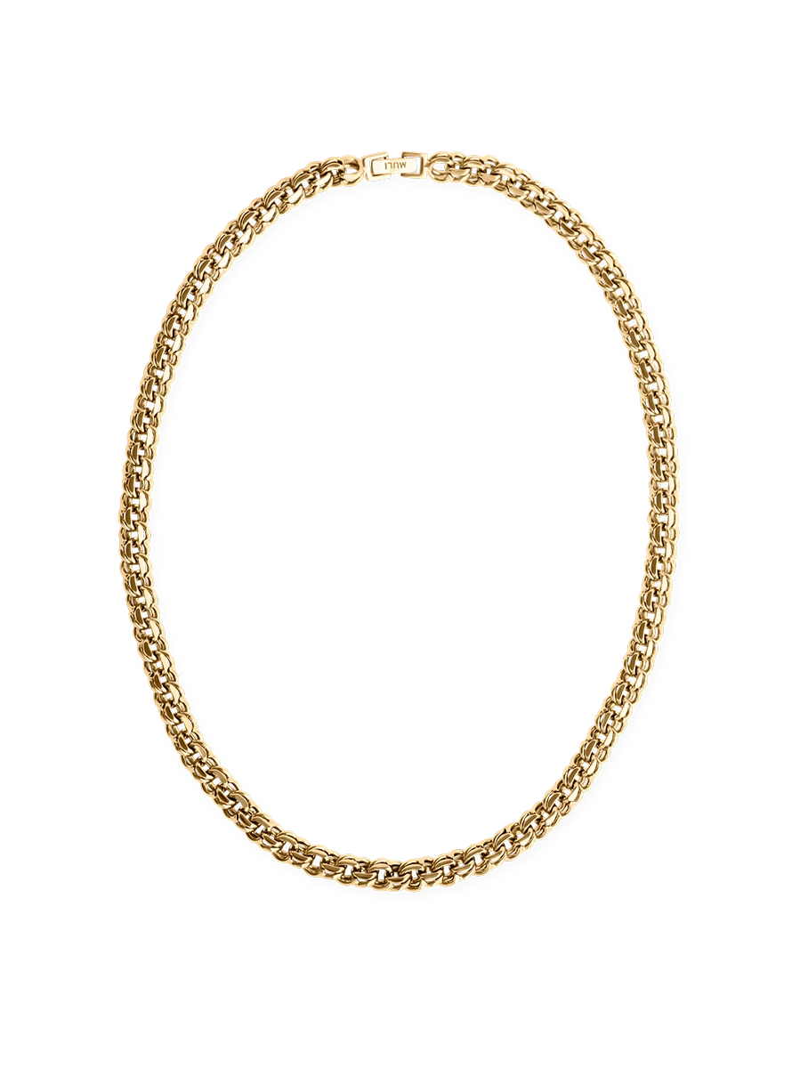 Muli Collection ist ein Scandi Jewellery Label, das sich hauptsächlich auf etwas markantere, größere Schmuckstücke spezialisiert hat - ganz im Zeichen des Zeitgeists und passend zum minimalistischen skandinavischen Design-Anspruch. Das "Bismarck" Necklace hat ein klassisches Gliederketten-Design im Vintage-Look mit nah beieinander sitzenden Gliedern, die sich schön an den Körper anschmiegen.