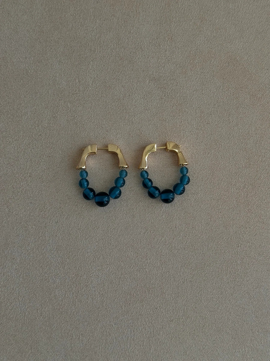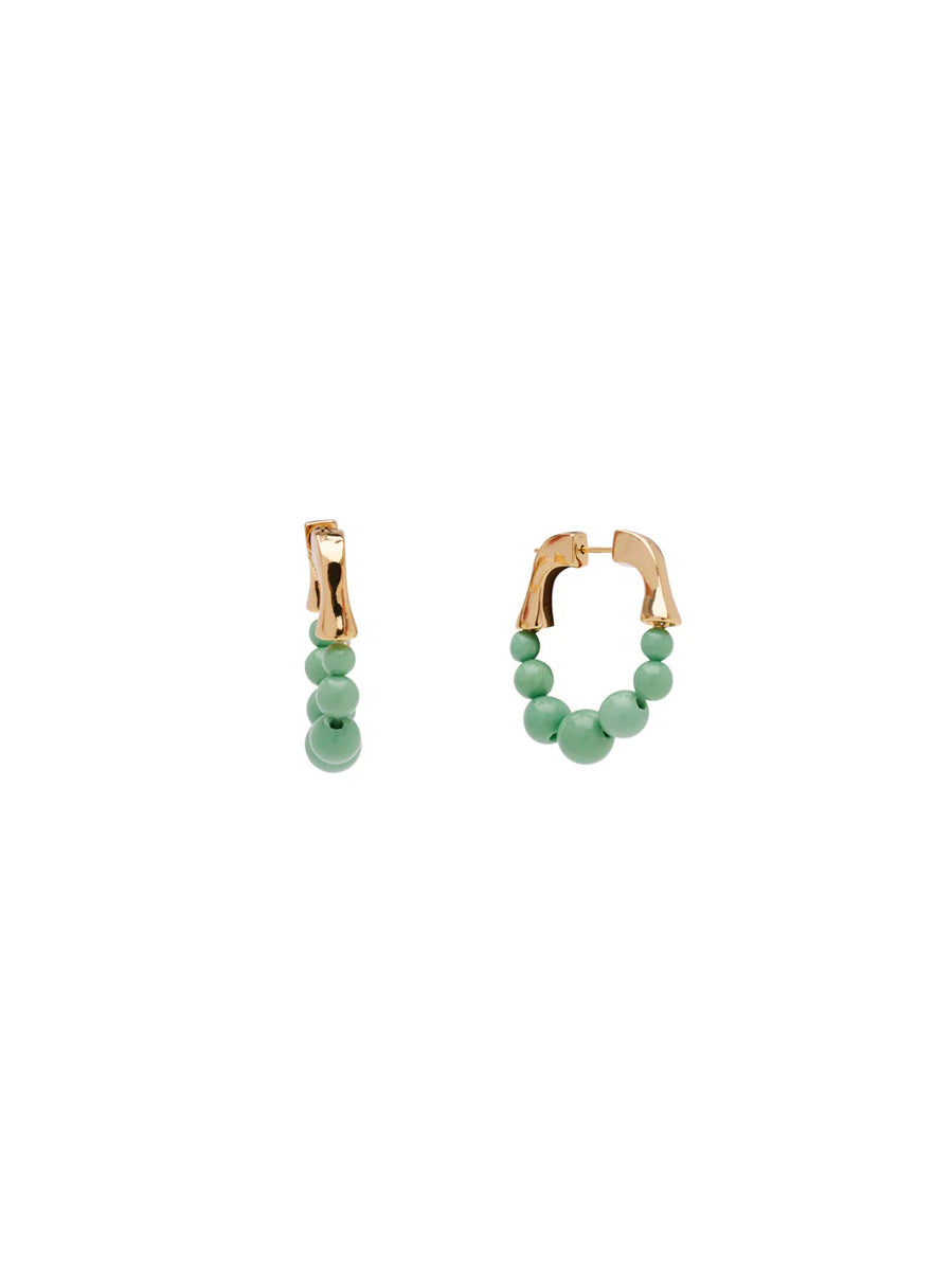 Ein hübscher, frühlingshafter und sommerlicher Ohrring von Pico Copenhagen mit einer Reihe von Perlen, die sich anmutig als Creole formen. Einzigartig und perfekt, um jedem Look eine elegante Note zu verleihen. Erhältlich in den Farben Mint und Blau.